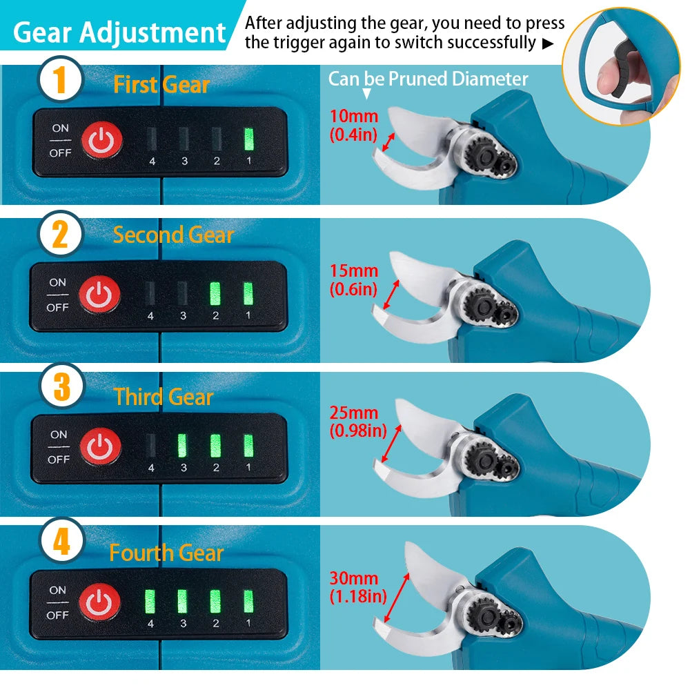 Brushless Electric Scissors Pruning Shears 4 Gear Garden Pruner Cutter Shrub Branch Pruning For Makita 18V Battery 700W 10-30mm