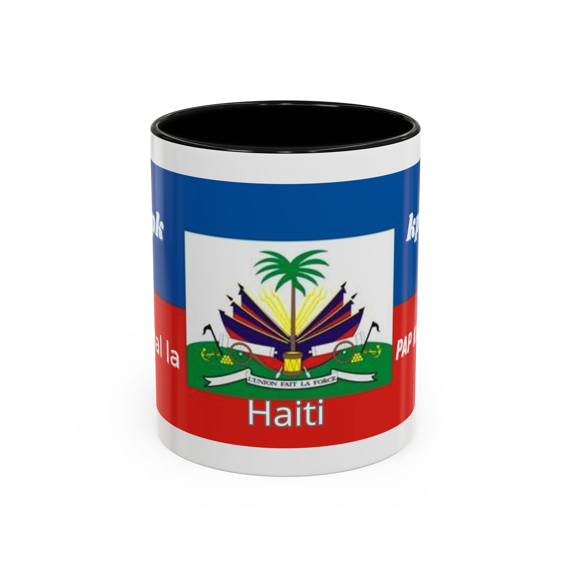 This Haitian coffee mug features the phrase 'kpk kanal la pap kanpe', giving off a cultural and vibrant vibe. Perfect for coffee lovers looking to add a unique touch to their morning routine. Ideal for those celebrating Haitian culture and traditions.